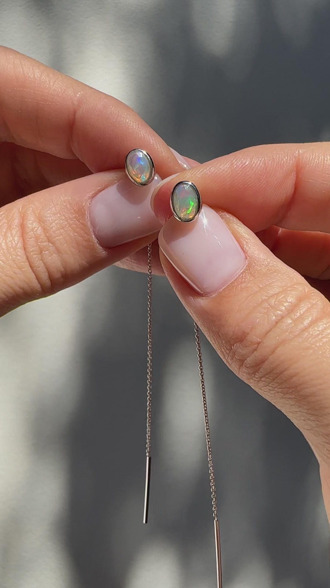 Opal Threader Earrings – Rhodium-Plated 925 Sterling Silver